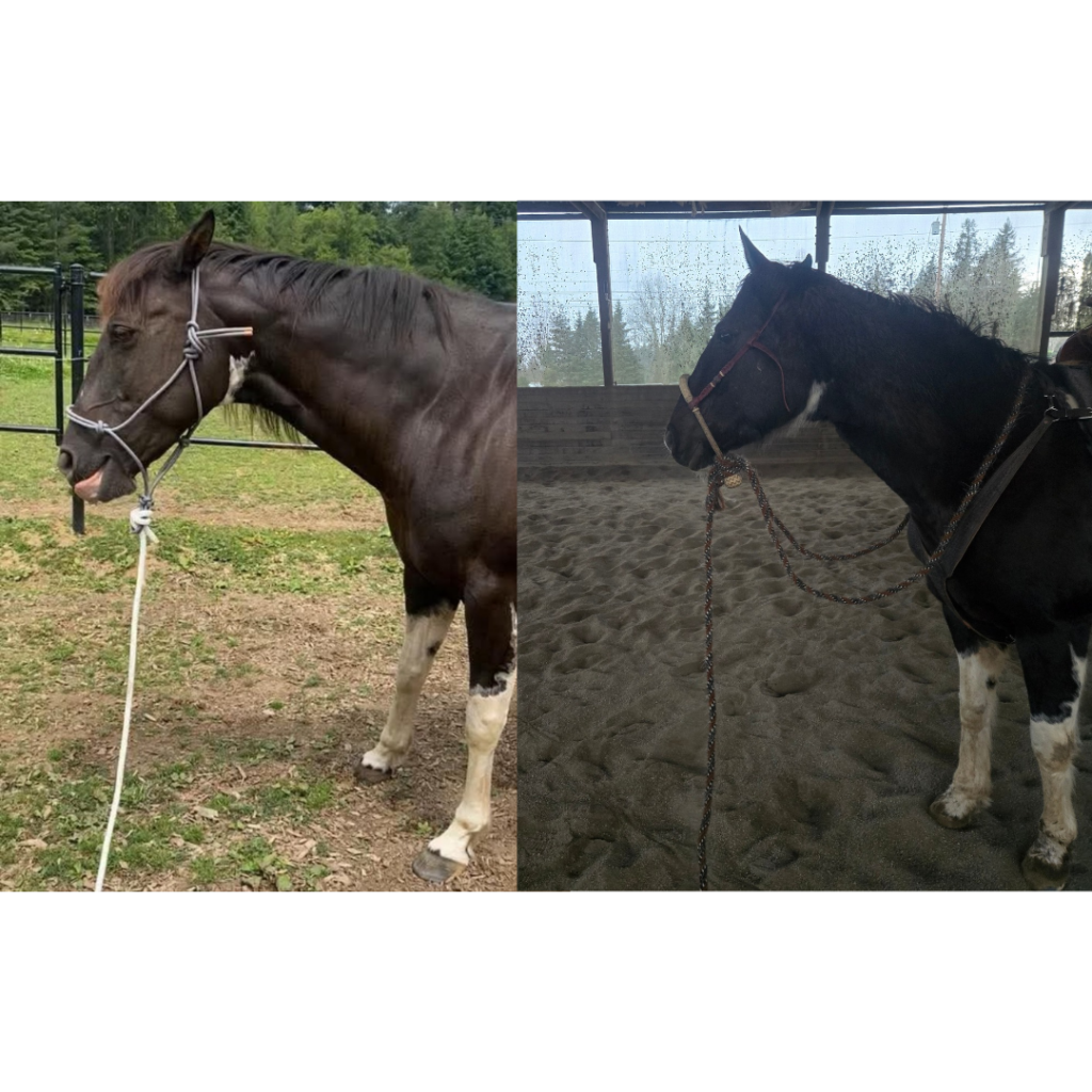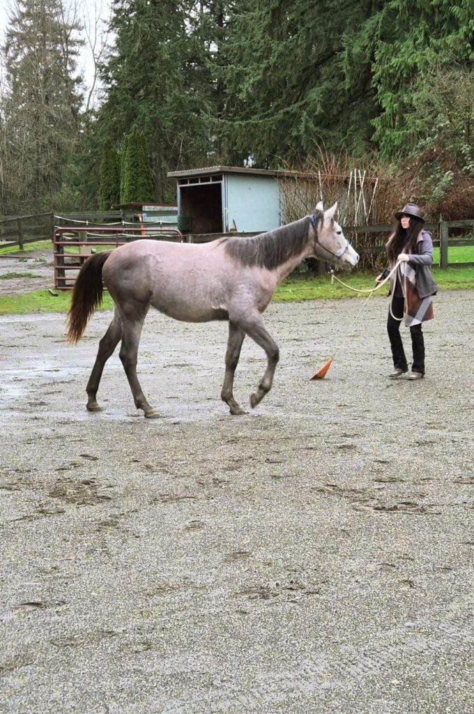 Her previous owner rode her English style. When I bought her over a year ago I wanted to transition her to Western. I wasn't confident in riding her as she was considered Green Broke. I decided to start from square one and have a trainer assess her and work with her. She noticed she was off balance and she didn't ride her until she was more balanced through groundwork. Then she rode her and noticed something's that needed more work and I stepped back at that point and had Victoria step in for an assessment. She noticed a lot of tight areas in her body and keyed in on some specific riding issues. She suggested Chiropractic work and body work which I did and that opened up some bad past trauma and no one could catch her for over a month. Victoria came and was able to get her halter on and do some important grounding work with her. We did this through a few sessions until she was able to easily halter her and get her into the barn as she was avoiding that too.
